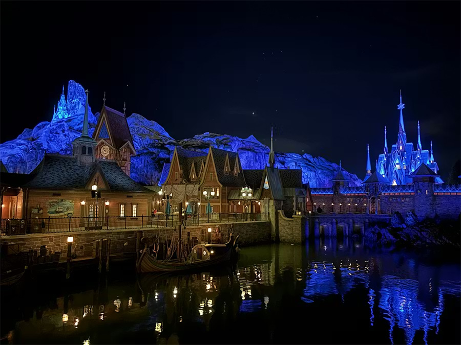 L’ensemble du nouvel espace World of Frozen, qui s’étend au pied de la Montagne du Nord s’articule autour d’un fjord recréé de toutes pièces, offrant aux visiteurs un nouveau lieu de spectacle.