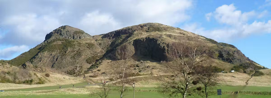 Ce paysage de collines douces et de pentes herbeuses qui surplombent un alignement basaltique et des habitations typiques est comparable au relief volcanique d’Arthur’s Seat à Édimbourg, en Écosse. Au bout du Royal Mile et jouxtant le palais de Holyrood, le relief d’un ancien volcan marque le paysage écossais. Cet ancien relief volcanique présente à sa base des orges basaltiques typiques, issus du refroidissement rapide des coulées volcaniques, et des sommets herbeux adoucis.